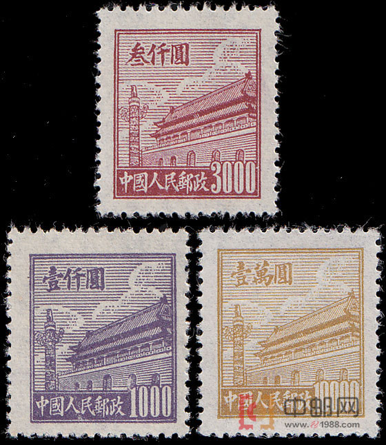 本套邮票共3枚。邮票的画面是天安门城楼和西侧的华表。华表古称“谤木”,后名“华表木”。相传中国传说时代的圣君尧、舜为了纳谏,在交通要道和朝堂上树立木柱,让人在上面书写谏言。后世所说的“华表” 则是指立于宫殿、陵墓、桥梁等前侧的装饰性的圆柱。天安门前的华表为汉白玉制作,上边蹲着石兽,下边横着云板,石柱上雕刻着云龙。