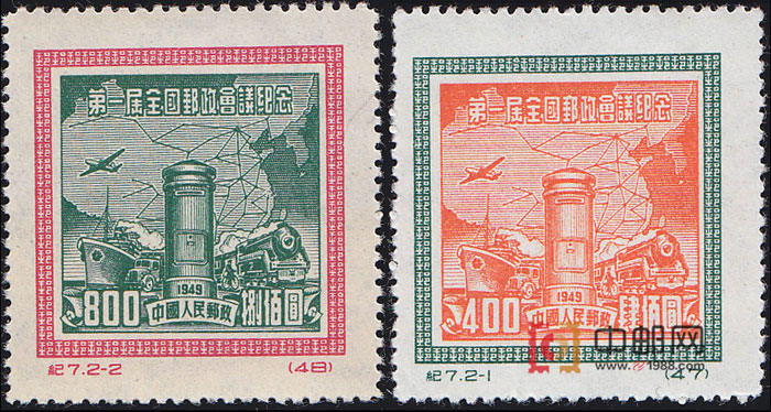 中国人民邮政是在革命战争时期诞生的。中华人民共和国成立后,1949年11月1日成立中华人民共和国邮电部,主管全国邮电工作。从此,中国人民邮政事业进入了一个崭新的发展阶段。1949年12月10日至28日,第一届全国邮政会议在北京召开。会议进一步明确了中国人民邮政工作的总方针,邮政机构、邮政资费、各项规章制度和有关业务进一步得到完善和统一。全国第一届邮政会议为人民邮政的发展奠定了基础,为沟通人民之间的联系和了解,沟通国家之间的和平和友谊,作了大量的准备工作。因此,为纪念这次盛会,邮电部发行了这套邮票。2幅画面,图案相同,均以密布邮路网线的中国版图为背景,以自行车、汽车、火车、轮船、飞机等通信工具为衬托,集中描绘了一硕大邮筒的形象,表现了首次全国邮政会议通信的主题。1955年1月10日发行再版票。