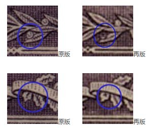 区别如上图所示,另外原、再版的齿孔度数不同:原版P12.5,再版P14。