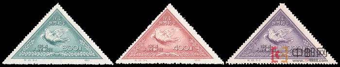 1950年11月16日至22日,第二届世界保卫和平大会在波兰首都华沙举行。出席大会的有81个国家的2065名代表。大会通过了《告全世界人民的宣言》、《致联合国书》等10项文件,要求裁减军备,停止朝鲜战争,禁止原子武器,并设立“世界和平理事会”,进行经常活动。为祝贺这次大会的召开,表达中国人民对和平的渴望,以及对美帝国主义侵略朝鲜罪恶行径的愤慨,邮电部发行了这套《保卫世界和平》(第二组)纪念邮票。票型为三角型,画面为毕加索所画的和平鸽,图案下部的两角均有象征和平的橄榄叶。并于1955年1月10日再版。