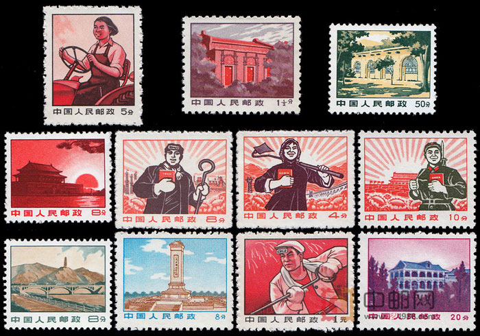 文化大革命期间,邮票志号被取消,普通邮票因此出现“普无号”。全套11种,其发行时间、图案、票幅、齿孔度数和整张枚数也不相同。
