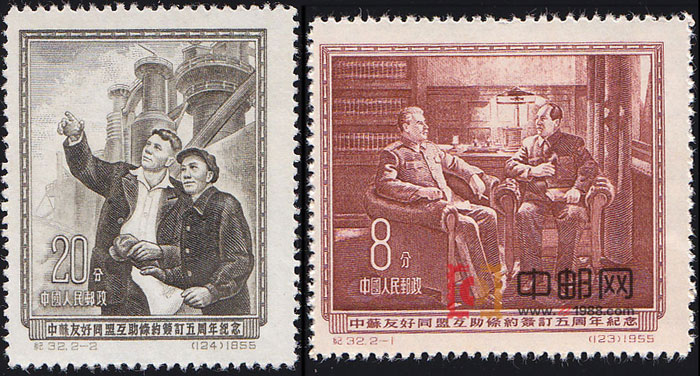 中华人民共和国的成立,开辟了中苏关系史上新的一页。1949年12月,毛泽东主席访问苏联并进行谈判,1950年2月14日由中苏两国外交部长分别代表两国政府签订了为期30年的中苏友好同盟互助条约。条约的主要目的是加强两国间的友好合作,共同防止日本帝国主义或其它与日本相勾结的任何国家的重新侵略与破坏和平。5年来,中苏两党、两国政府和人民不断进行各种友好交往与合作,互相学习和借鉴彼此的政治、经济、文化建设经验与科学技术新成就,使两国在为争取世界持久和平的共同事业中更加紧密团结,不断进步。为纪念中苏友好互助同盟条约签订5周年,邮电部发行了这套邮票。
