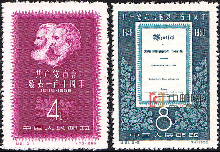 《共产党宣言》是马克思和恩格斯合著的科学共产主义的纲领性文件,1847年11月29日至12月8日,在伦敦召开了同盟第二次代表大会,马克思、恩格斯亲自参加和领导了这次会议 ,并接受大会委托“起草一个准备公布的周详的理论和实践的党纲”,1848年2月用德文在伦敦出版,名为《共产主义宣言》,即《共产党宣言》。这部著作发表至今整整110年的历史,我们中国以及全世界无产阶级革命运动波澜壮阔的发展,越来越多的事实充分显示了这部伟大著作对于人类的进步事业,对于全世界无产阶级的解放具有无可比拟的光辉作用。在《共产党宣言》发表110周年之际,邮电部发行了这套邮票,以纪念这部全世界工人争取自由解放的共同纲领。