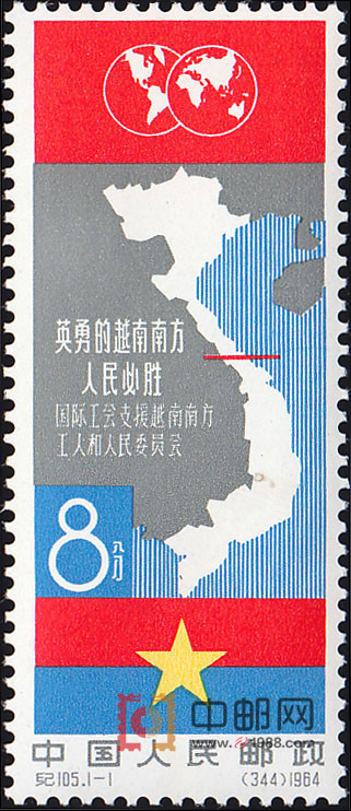 1964年7月20日是关于恢复印度支那和平的 “日内瓦协议”签订10周年的纪念日。为了支持越南人民反对美国的武装干涉、争取和平统一祖国的斗争,中国邮电部发行了“英勇的越南南方人民必胜”这套纪念邮票。