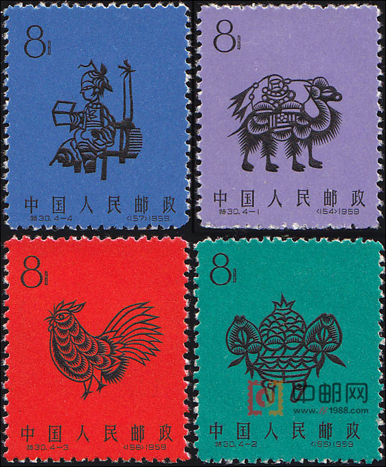 本套邮票共4枚。邮票图案直接取材于四幅剪纸图案。