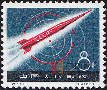 1959年1月2日,苏联继1957-1958年连续发射成三颗人造地球卫星之后,又成功地发射了宇宙火箭,这颗飞行器由多级火箭组成,其最后一级超过了11.2公里/秒的第二宇宙速度,成为环绕太阳飞行的一颗人造行星。发射后,于1月2日莫斯科时间20时正至1月7日,大约5天中这颗火箭曾经过月球旁边,为人类向月球挺进作了试探。邮票画面即为苏联宇宙火箭飞向天宇的情景,标志着人类航天事业进入了新阶段。