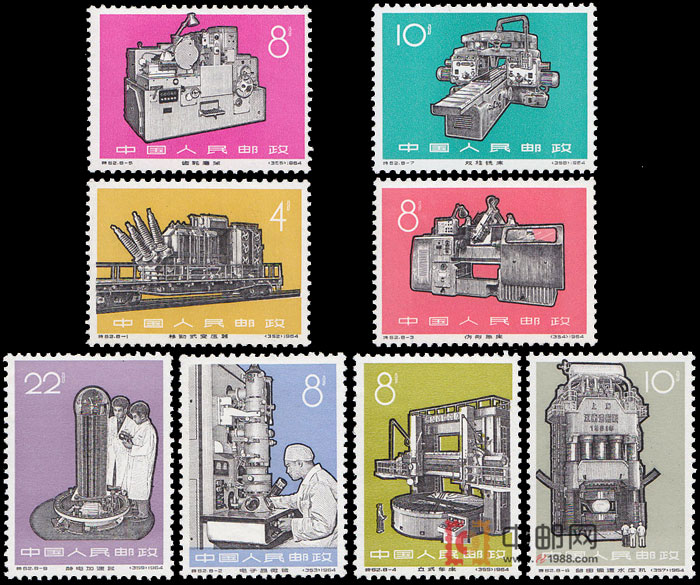 本套邮票共8枚,介绍了八种工业新产品。