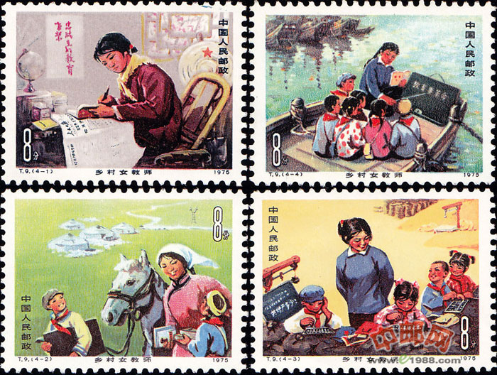 中华人民共和国成立以后,一直重视妇女的社会作用。妇女们对中国少年儿童的健康成长,对中国的青少年教育事业付出了辛勤的劳动,作出了很大的贡献。为表彰她们的事迹,让全社会都来关心农村的教育事业,1975年“三八”妇女节发行了这套特种邮票。
