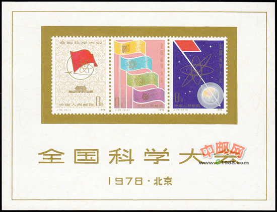 1978年3月18日,为了庆祝全国科学大会胜利召开,中华人民共和国邮电部发行一套《全国科学大会》纪念邮票,全套3枚。许彦博设计。影写版。齿孔11.5度×11度。背面刷胶。邮局全张枚数50(10×5)。北京邮票厂印制。