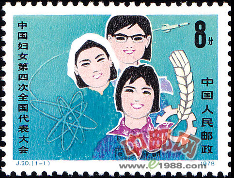 本套邮票1枚,为“中国妇女”。画面主图为妇女代表的形象,前面的代表工人,中间头戴白毛巾的代表农民,上面戴眼镜的代表知识分子。