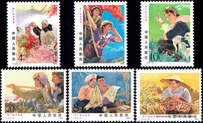 6-4为“把知识献给农业”。表现知识青年进行农业科学实验。