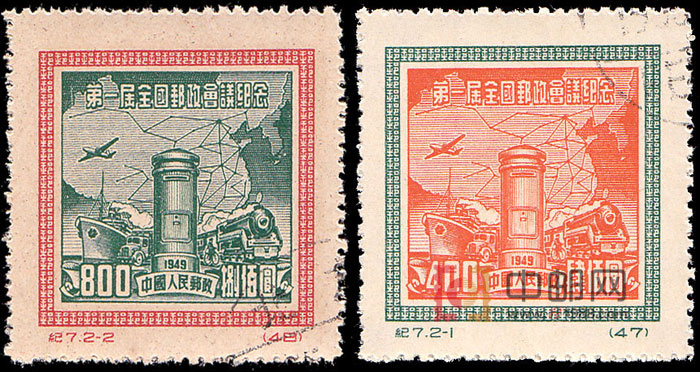中国人民邮政是在革命战争时期诞生的。中华人民共和国成立后,1949年11月1日成立中华人民共和国邮电部,主管全国邮电工作。从此,中国人民邮政事业进入了一个崭新的发展阶段。1949年12月10日至28日,第一届全国邮政会议在北京召开。会议进一步明确了中国人民邮政工作的总方针,邮政机构、邮政资费、各项规章制度和有关业务进一步得到完善和统一。全国第一届邮政会议为人民邮政的发展奠定了基础,为沟通人民之间的联系和了解,沟通国家之间的和平和友谊,作了大量的准备工作。因此,为纪念这次盛会,邮电部发行了这套邮票。2幅画面,图案相同,均以密布邮路网线的中国版图为背景,以自行车、汽车、火车、轮船、飞机等通信工具为衬托,集中描绘了一硕大邮筒的形象,表现了首次全国邮政会议通信的主题。1955年1月10日发行再版票。
