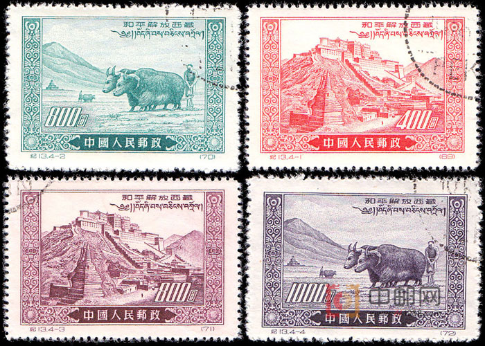 1949年10月1日,中华人民共和国和中央人民政府宣告成立。在中国人民革命胜利的鼓舞和中央人民政府民族政策的感召下,西藏和其他地区的藏族爱国同胞迫切要求中央人民政府解放西藏,并为和平解放西藏奔走呼吁。1951年5月23日,中央人民政府和西藏地方政府关于和平解放西藏办法协议的签字,宣告西藏和平解放。为祝贺和平解放西藏,邮电部发行了这套纪念邮票。共4枚两种图案。并于1955年1月10日再版。