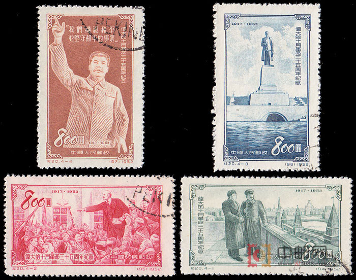 1917年爆发的俄国十月革命是俄国工人阶级在布尔什维克党领导下联合贫农所完成的伟大的社会主义革命。这次革命在人类历史上第一次推翻剥削阶级的统治,建立了苏维埃社会主义国家,它开辟了人类历史的新纪元。这次革命发生在1917年11月7日,按俄历为10月25日,因此称之为“十月革命”。在十月革命35周年之际,邮电部发行了这套纪念邮票。这套邮票曾定于1953年2月14日发行,名称为:“伟大的苏联十月革命三十五周年纪念”,但“苏联”乃1922年才成立,十月革命时的1917年尚无“苏联”,因此停发。4月23日重印,名称删去了“苏联”二字,10月5日发行。