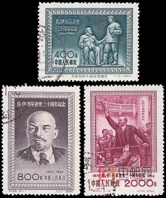 弗拉基米尔·伊里奇·列宁,原姓乌里扬诺夫,列宁是他的笔名。1870年4月22日生于俄国辛比尔斯克城(今乌里扬诺夫斯克)。1888年,他参加马克思主义小组,并深入地研究马克思主义的著作,在他的一生中作出了非凡的成就。俄历10月26日晚在苏维埃代表大会第二次会议上,列宁当选为工农苏维埃政府的人民委员会主席,并颁布了具有重大历史意义的《和平法令》、《土地法令》。之后,列宁以全部精力投入到社会主义国家的革命和建设中去。但是,由于列宁在帝俄时代的艰苦生活,繁重的理论工作和实际工和,以及遇刺受重伤对健康的影响,缩短了他的生命,1924年1月21日晚6时50分,列宁在莫斯科附近的哥尔克村逝世,终年54岁。这位伟大无产阶级革命导师的去世,使全世界劳动者无不极为沉痛,在列宁安葬之日,国际无产阶级宣布停止一切工作5分钟,以表达对他的深切怀念和崇敬。在列宁逝世30周年之际,我国邮电部发行了这套纪念邮票,再次表达了全中国劳动人民的这种感情。
