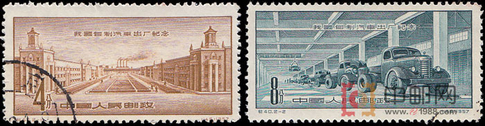 中华人民共和国政府把制造自己的汽车列为建国后的重点工程。1956年10月1日,中国自行设计制造的“解放牌”汽车首次出现在国庆节游行队列中。为了纪念中国自制汽车出厂,中国邮电部于1957年5月1日发行了一套纪念邮票。