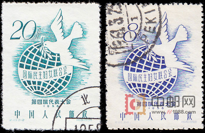 国际妇女联合会第四届代表大会于1958年6月1日至5日,在奥地利决策者维也纳举行。出席会议的有苏、中、印度、法国等56个国家的57个会员罢休的代表。大会听取了《关于当前全世界妇女的作用和责任及国际民主妇联的任务》的报告,讨论了关于加强各国妇女和人民之间的了解和友谊、保卫和平、改善家庭生活条件、保卫和争取妇女在各方面的平等权利、教育青年等内容,使各国妇女增进了了解,加强了联系,沟通了感情,统一了认识,发挥了在各自国家和世界事务中的作用。为庆祝这次大会的召开,邮电部发行了这套纪念邮票。2幅画面图案相同,均为国际民主妇联第四届代表大会的会徽,其图形由一只衔着橄榄枝叶的和平鸽正在飞向地球组成。表达了世界民主妇联“四大”为全球带来和平的愿望。