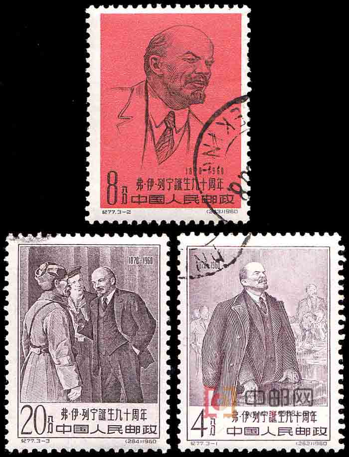 邮票介绍: 在列宁诞生90周年之际,邮电部发行的纪念邮票以3幅画面概括描绘了他那伟大的一生中的几个侧面,表达了中国人民对他的崇敬和怀念。第1图为列宁在演讲,以列宁登上讲坛,批判敌人,陈述己见的偷窃姿态,表现他的顽强斗争和大义凛然。第2图为列宁像,以列宁的一幅素描画像,表现他作为一位伟大革命领袖的风度和精力充沛的凡人气质。第3图为列宁在斯摩尔尼宫和近卫军谈话,描绘了列宁在那里亲自领导十月革命武装起义时与士兵亲切交谈的情景。