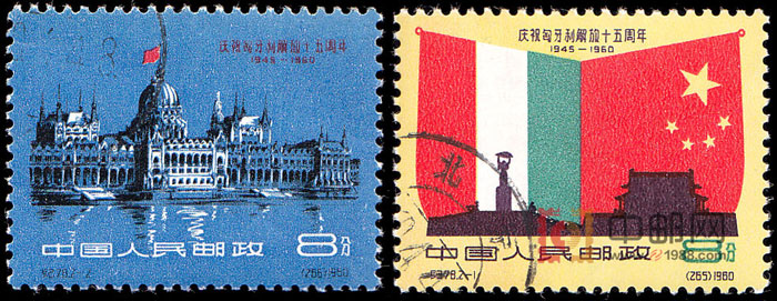 邮票介绍: 1919年3月21日,在匈牙利共产党领导下,建立了匈牙利苏维埃共和国。同年8月1日,苏维埃共和国被颠覆,辆恢复了君主立宪政体,法西斯独裁者霍尔蒂开始统治匈牙利。1945年4月4日,匈牙利人民和苏军一起解放了全境,同年11月4日召开第一次国民议会,1946年2月1日宣布废除帝制,1949年8月15日成立了匈牙利人民共和国。在匈牙利解放15周年之际,邮电部发行了这套纪念邮票,充分表达了中国人民对匈牙利的友好感情。