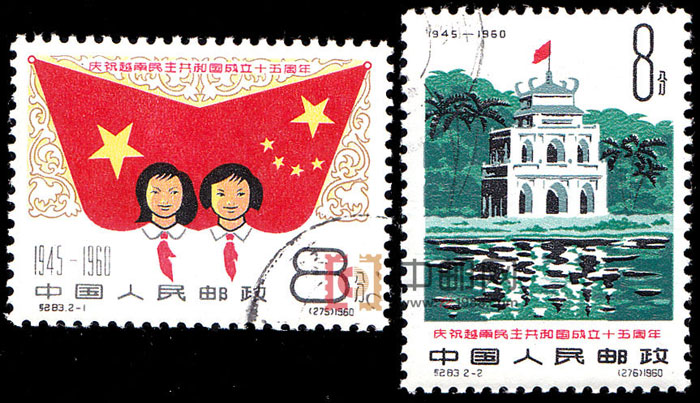 1945年8月16日,越南人民进行了八月革命,推翻了殖民统治,成立了越南临时政府。越南人民在胡志明主席和越南劳动党的领导下,进行了连续8年多的艰苦抗战,于1954年5月7日,在奠边府全歼法军16000多人,取得了决定性的胜利,迫使法国在同年7月21签订了日内瓦协议,保证了尊重越南的独立、主权、统一和领土完整,并以北纬17°为临时军事分界线。为庆祝越南民主共和国成立15周年,邮电部发行了这套纪念邮票。以2幅画面表现了中越两国的传统友谊和越南的风光及历史。