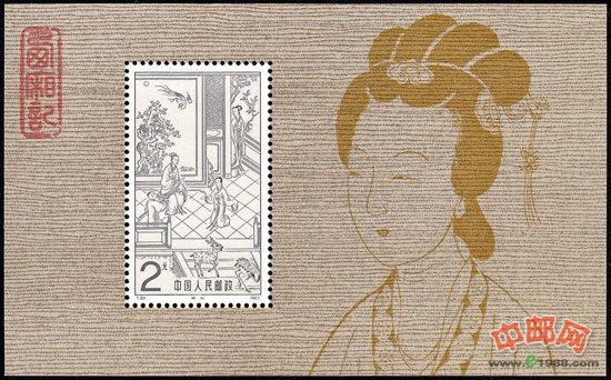 本套小型张邮票共1枚。画面为“拷红”。原画选自明代《西厢记》木刻本插图。画面上,崔夫人正在拷问跪着的红娘。