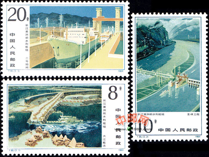 邮票图案选取了长江三峡壮丽的景观,既反映出现代化工程的浩大,又显示了现代化工程给美丽壮观的三峡风景增添了更为动人的景色。