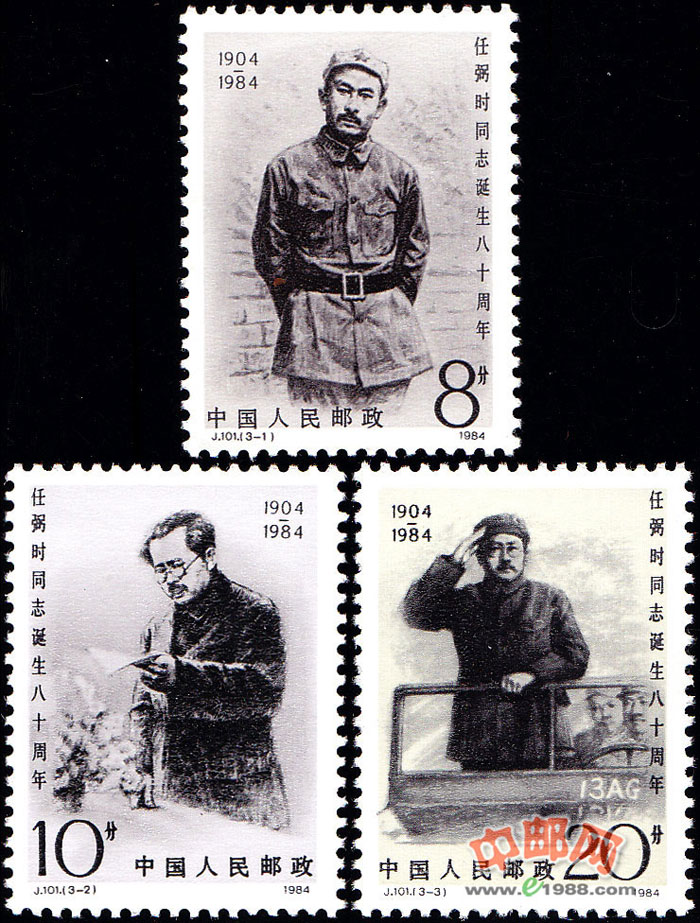 任弼时(1904——1950),湖南湘阴人。1920年加入中国社会主义青年团,同年到苏联学习。1922年加入中国共产党。1924年回国,次年任中国共产主义青年团中央组织部部长。以后曾当选为五、六、七届中央委员;六、七届中央政治局委员、书记处书记。历任共青团中央书记、中共中央组织部长、八路军总政治部主任、中共中央秘书长等职。他的一生对中国共产党的组织工作、军事工作、土地改革和青年工作有着特殊的贡献。1950年10月27日因患脑溢血,于北京病逝。为纪念任弼时诞生80周年,邮电部特发行这套纪念邮票。