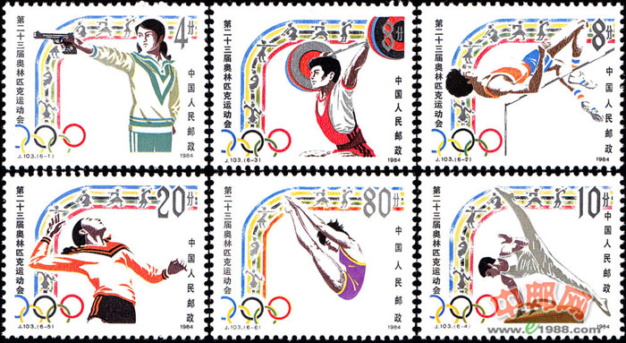 本套邮票共6枚。全部选取中国运动员在本届奥运会上有较强实力的运动项目。