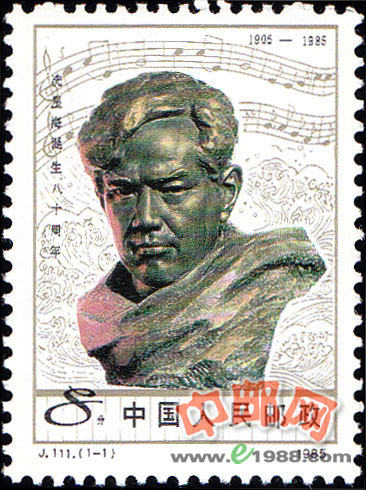 本套邮票共1枚,为“冼星海像和乐谱”。邮票画面主图是冼星海的塑像,背景是黄河的滔天巨浪和《黄河大合唱》的乐谱。