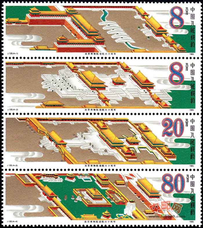 本套邮票共4枚。以四直连的票式将故宫从午门经太和殿、乾清宫、交泰殿至神武门一线的主要建筑逐一展现。