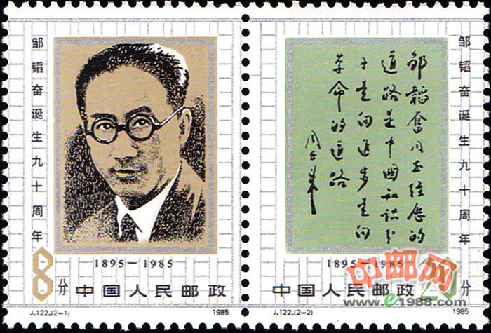 J(2-1) 邹韬奋像 8分 1543.51万枚