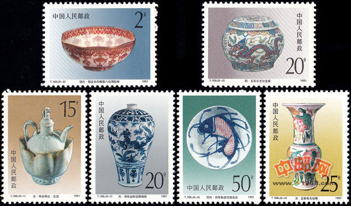 全套邮票6枚。图案均为原物的精美照片衬以过渡的底色。