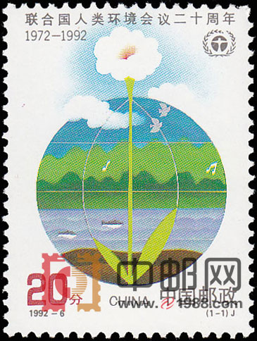 1992年6月5日,为纪念联合国人类环境会议第一届会议召开20周年,邮电部特发行纪念邮票一套。