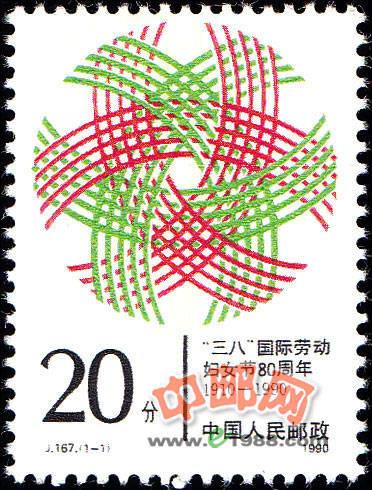 J(1—1) “三八”国际劳动妇女节八十周年 20分 3723.9万枚