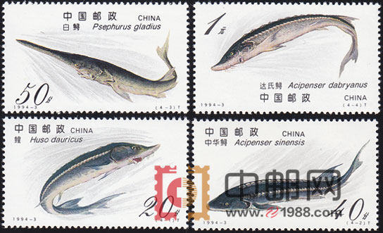 鲟是大中型的经济鱼类,也是珍贵的鱼种。全世界共有20多种其中我国有8种,是世界上鲟类资源最丰富的国家之一。“鲟”票设计的简练鲜明。通过鲟的完美充实之条形造型充满票面,仿佛水在流,鲟在游,有声有色。全套共4枚。