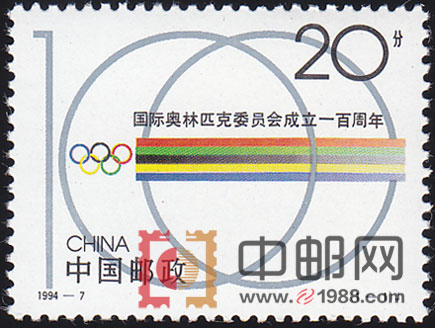 国际奥林匹克委员会管辖奥林匹克运动,领导组织奥运会比赛是一项重要工作。在奥委会成立100周年至今共举行了25届奥运会。首届雅典奥运会13个国家311名运动员参加,而今巴塞罗那奥运会已有150多个国家的1万多名运动员参加比赛。奥运会的蓬勃发展,震憾全球。在这近百年的奥运会征战中,数十万运动员参加了多个项目的金牌争夺战。我国为国际奥委会成立100周年发行的这枚邮票,是我国第一套采用电脑设计的邮票,画面单纯、大方、主题鲜明。