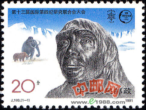 本套邮票共1枚。画面以炭笔素描手法刻画北京猿人的头像,远古历史的神秘感跃然纸上;整个画面采取黑、白、蓝色的冷调处理,冰河时期的原始氛围油然而出。画面层次是以北京猿人特写头像为主,以猛犸象和古犀牛为中景,并置于喜马拉雅山冰川的整体景观中。它以和谐的色调,优美的构图,逼真的形象,分明的层次,概括了第四纪的重要生物与地貌特点,并对这一学科的研究内容和第十三届国际第四纪研究联合会大会召开的地点给予了暗示。邮票设计堪称艺术性与科学性的统一。