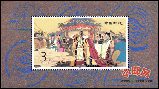 邮票介绍: 公元前51年前后,匈奴部落贵族发生了分裂,呼韩邪单于被郅单于打败,率领部众从漠北的单于庭南下投归汉朝,寄属于今内蒙古呼和浩特至包头一带达8年之久。公元前36年,郅支被汉朝在西域的驻军攻杀,从此匈奴复归于统一。公元前33年,呼韩邪单于从漠北至汉都长安,朝见汉帝,请示和亲,汉元帝以宫人王嫱嫁之。这就是中国历史上有名的“昭君出塞”故事。