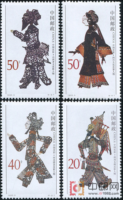 皮影戏属于傀儡戏的一种,是中国传统文化艺术。皮影戏的产生是颇为久远的。但真正的皮影戏是北宋时期才真正兴盛起来的。到了清代末年,皮影戏几乎遍布大半个中国。我国影颈13世纪随着蒙古军事势力传到亚细亚一带,后又从波斯传到埃及、土耳其等地。中国影戏在欧洲大陆的流行,给以后的电影发明带来启示。皮影戏长期的广泛传播,在全国各地形成了许多流派。这次入选的4幅影人的全身造型,举重若轻,以一当十,既不失中国皮影精微细腻的韵味,又有很强的整体感。
