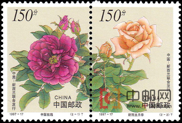 1907年新西兰独立,成为英国的自治领。1972年12月22日,我国同新西兰签署了建立外交关系的联合公报。至今20多年来,两国友好往来不断加强,两国人民的友谊与日俱增。联合发行以“中国玫瑰”和“新西兰月季”为题材的《花卉》邮票,不仅表达了两国邮政方面的合作与友好交流,也象征着两国的友谊,以及两国人民追求更加美好未来的愿望。