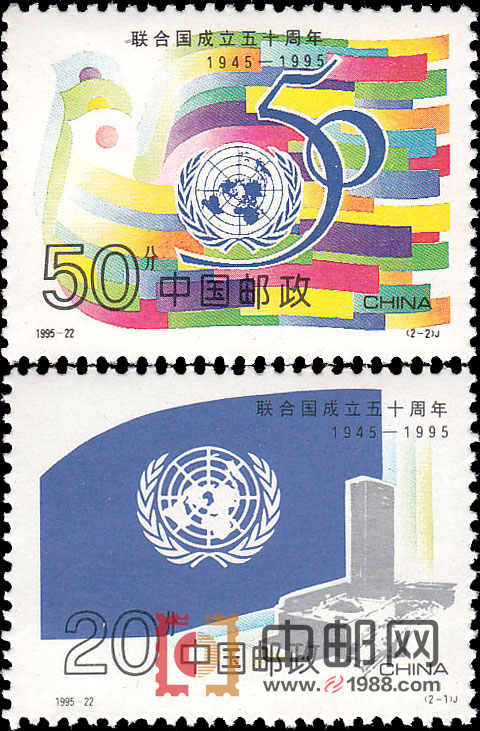 J (2-1)联合国旗和联合国大厦 20分 5014.25万枚