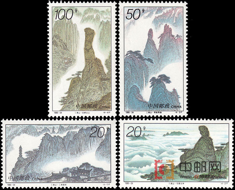 三清山位于江西省东北部玉山、德兴两县交界处。景区面积220多平方公里,中心景区71平方公里,主峰玉琼峰海拔1817米,三清山风景名胜资源丰富,种类齐全,它东险西奇北秀南绝,兼具“泰山之雄伟,华山之峻峭,衡山之烟云,匡庐之飞瀑”的特点。奇峰异石,云雾佛光,苍松古树,峡谷溶洞,溪泉飞瀑,古代建筑,石雕石刻,令人目不暇接。景区内有名可考的奇峰有48 座,怪石52处,均以其神奇的形态和美妙的传说,给人以无限的暇想和美的感受。 全套共4枚。