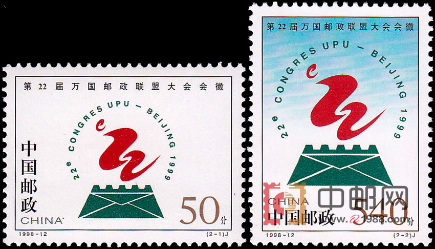 J(2--1)第22届万国邮政联盟大会会徽 50分 4199.9万枚