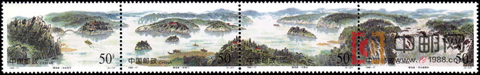 镜泊湖位于黑龙江省牡丹江市宁安县境内,据牡丹江市区110公里。镜泊湖是牡丹江上游的天然水库,又是一个天然的大渔场。,自古以来,红尾鱼就非常有名,曾是古代的贡品。镜泊湖更为迷人的地方,是“湖区八景”。除“白十砬子”、“珍珠门”、“小孤山”、“吊水楼瀑布”等四景被选入这套邮票外,还有“城墙砬子”,“大孤山”、“道士山”、“老鸹砬子”都是各有特色,姿容万千。镜泊湖,1982年便已被定为国家级风景游览区,辟为科研、旅游、避暑的胜地。国家邮政局发行这套《镜泊湖》。