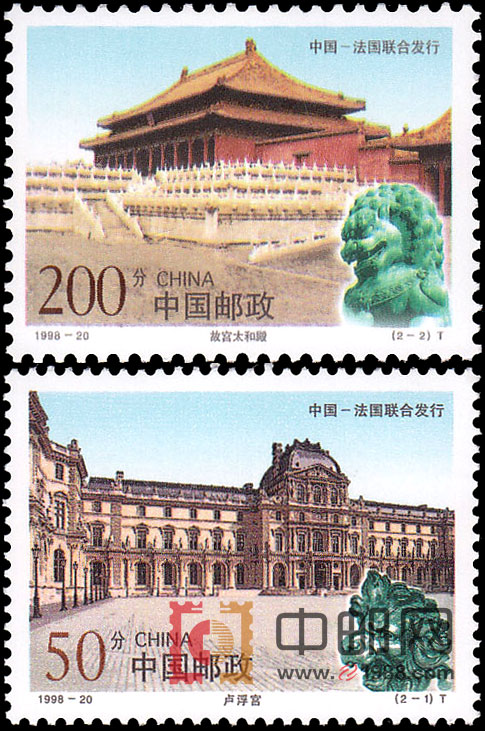 法兰西共和国是最早承认新中国的西方国家之一,中法两国邮政联合发行的邮票确定以中国北京的故宫太和殿和法国巴黎卢浮宫作为邮票的主图。邮票图稿由克劳德·安德列奥托先生设计。他1949年生于巴黎,毕业于埃蒂安纳书画刻印艺术学校,是法国著名的造型艺术家。从1975年起,他在法国已多次举办个人画展,其作品还曾在美国、加拿大等国展出。