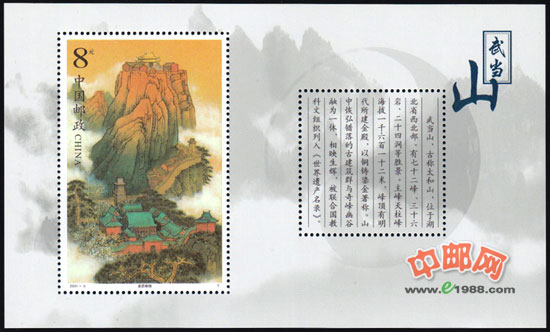 小型张《金顶春晓》是武当最高峰--天柱峰上规模宏大的太和宫和金殿的景观。