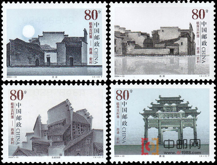 中国皖南古村落的典型代表——西递、宏村在安徽黄山南麓的黟县。2000年12月,西递和宏村被联合国教科文组织正式批准为世界文化遗产。西递位于黟县东南部,村中住宅大多临水而建,鳞次栉比的古民居形成船形的船体。整个村落的整体轮廓与所在的地形、地貌、山水等自然风光和谐统一,具有很高的审美情趣。宏村位于黟县县城东北,整个村庄从高处看,宛若一头斜卧山前溪边的青牛。村中半月形的池塘称为“牛胃”,一条400余米长的溪水盘绕在“牛腹”内,被称作“牛肠”。村西溪水上架起四座木桥,作为“牛脚”。这种别出心裁的村落水系设计,不仅为村民生产、生活用水和消防用水提供了方便,而且调节了气温和环境。