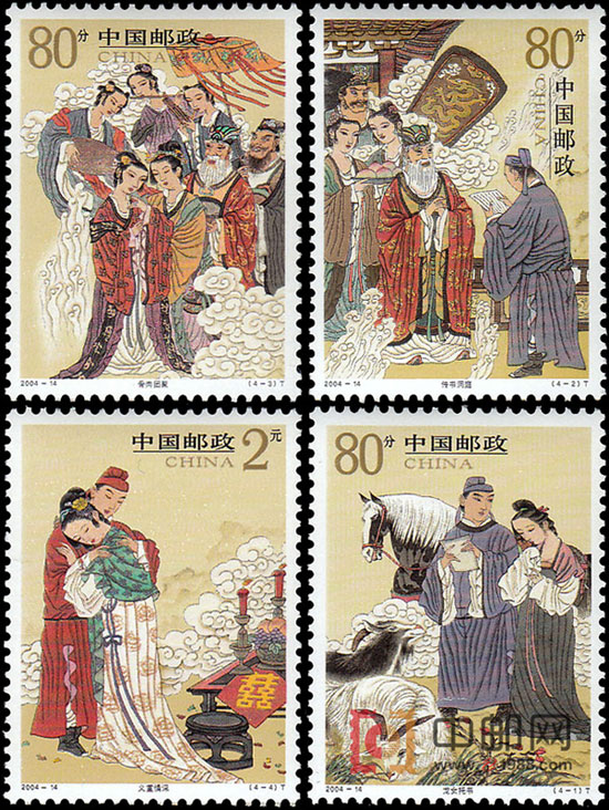 国家邮政局定于2004年7月17日发行《民间传说-柳毅传书》特种邮票1套4枚。