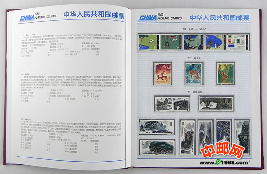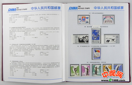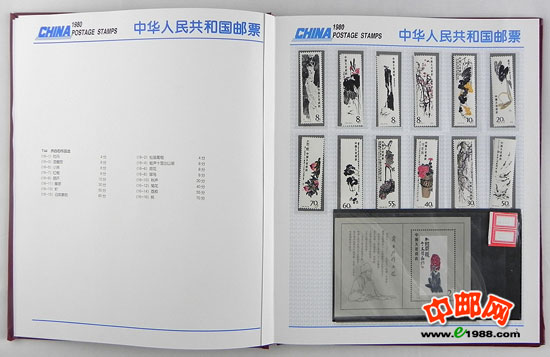 1980年册,包含1980年中华人民共和国邮电部发行的全部邮票和小型张,不含1980年评选纪念张。