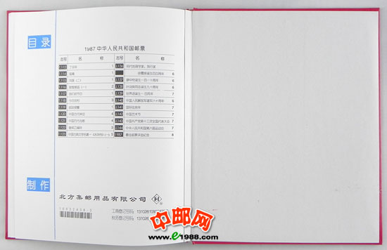 1987年册,包含1987年中华人民共和国邮电部发行的全部邮票和小型张,不含1987年评选纪念张。